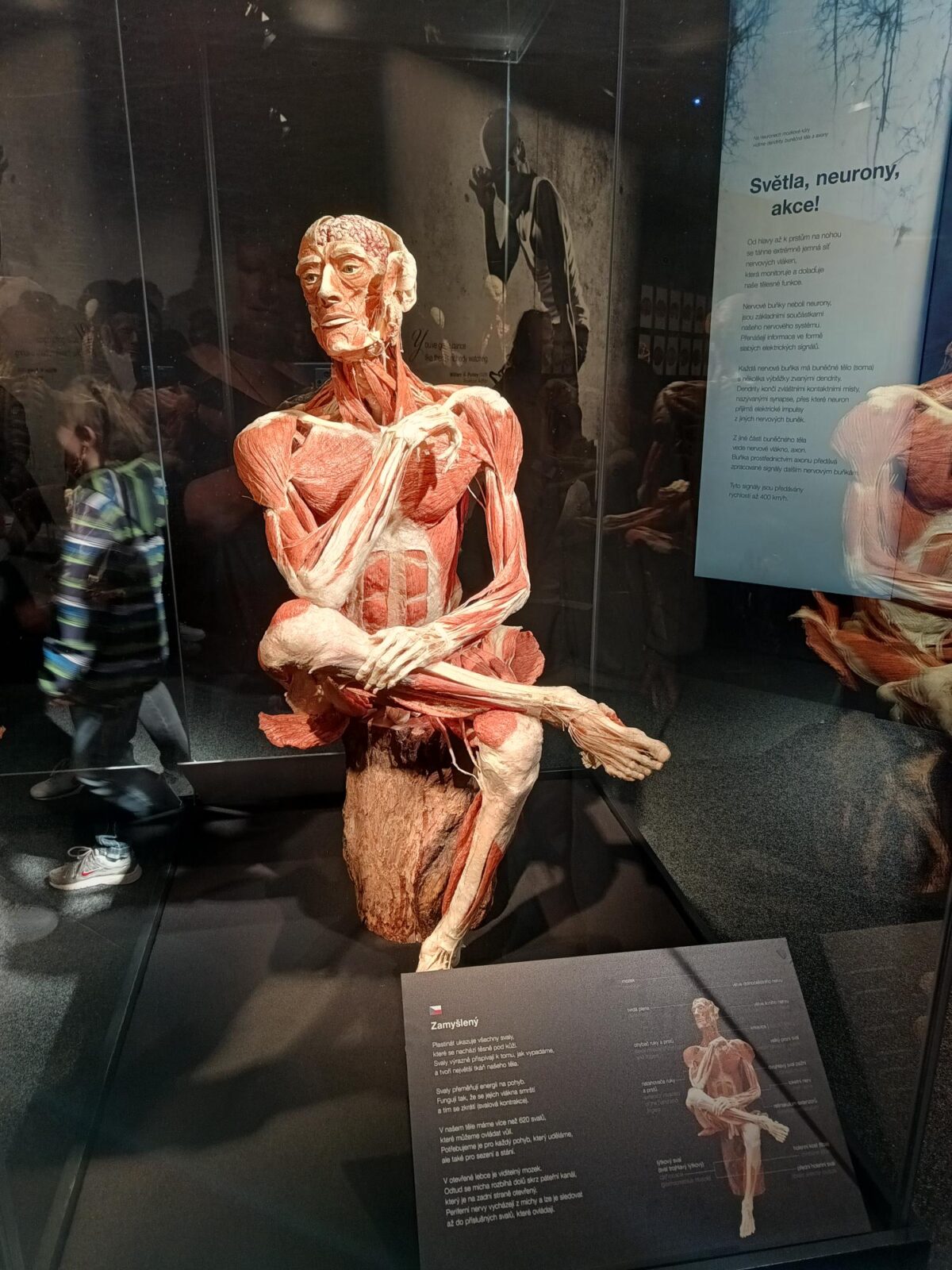 Jedinečná výstava z dílny zakladatele metody plastinace Dr. Gunthera von Hagense provedla studenty celým lidským tělem – od kůže přes svalstvo a kostru až po nervovou soustavu, oběhový systém, dýchací soustavu, rozmnožovací orgány a další části lidského organismu. Součástí prohlídky byl také odborný výklad vyškolené medičky, která žákům srozumitelně představila jednotlivé exponáty. Na konkrétních orgánech i celotělových preparátech vysvětlila metabolismus a základní principy fungování lidského těla.